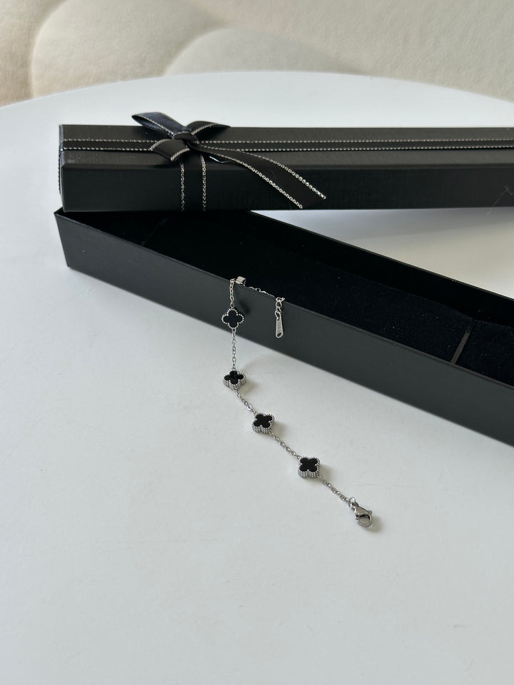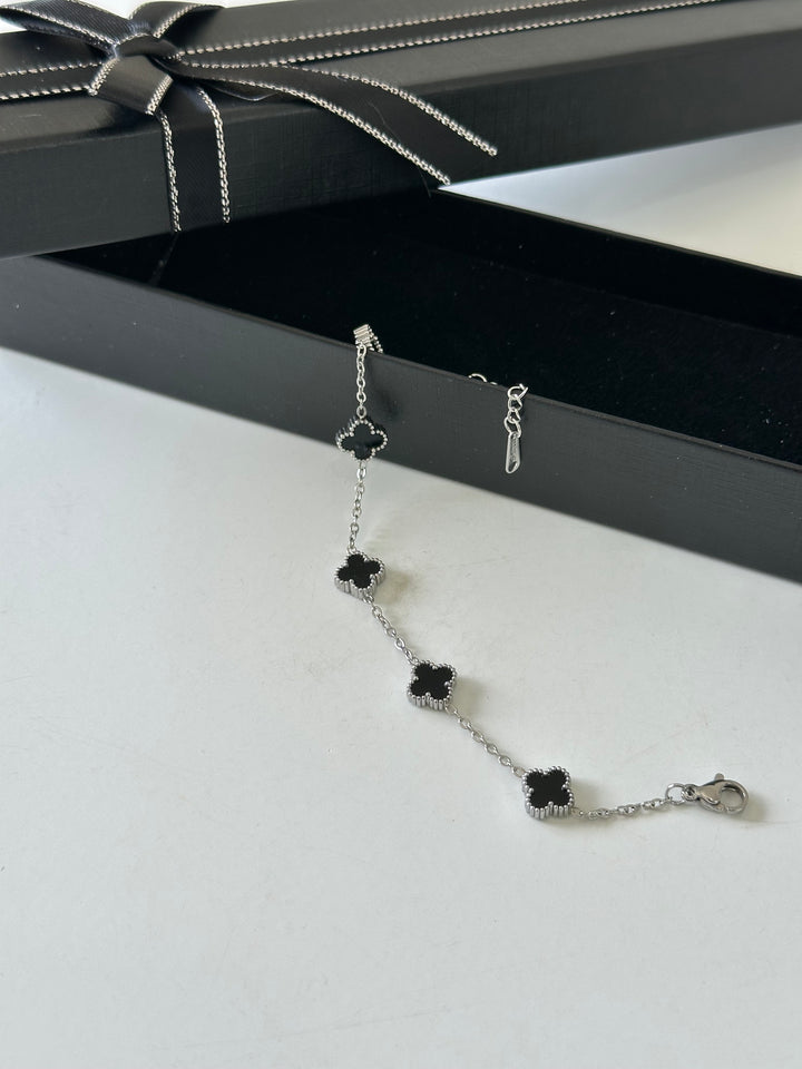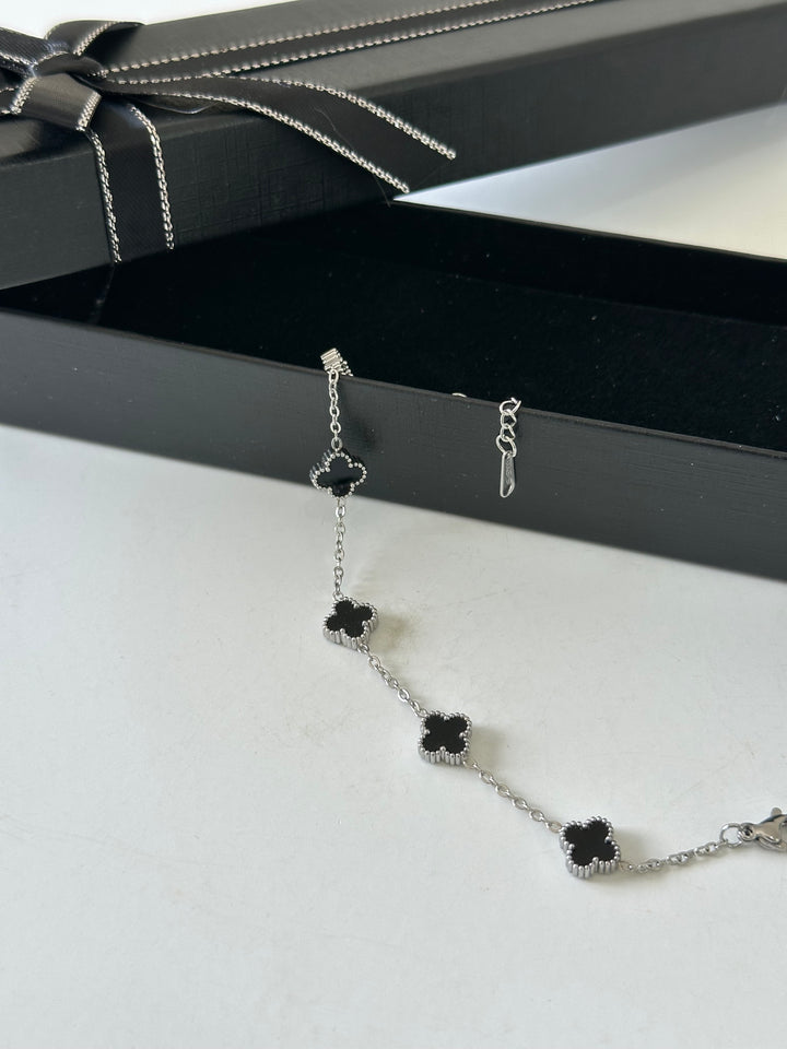 اسوارة فان كليف فضي اسود وردة صغيرة