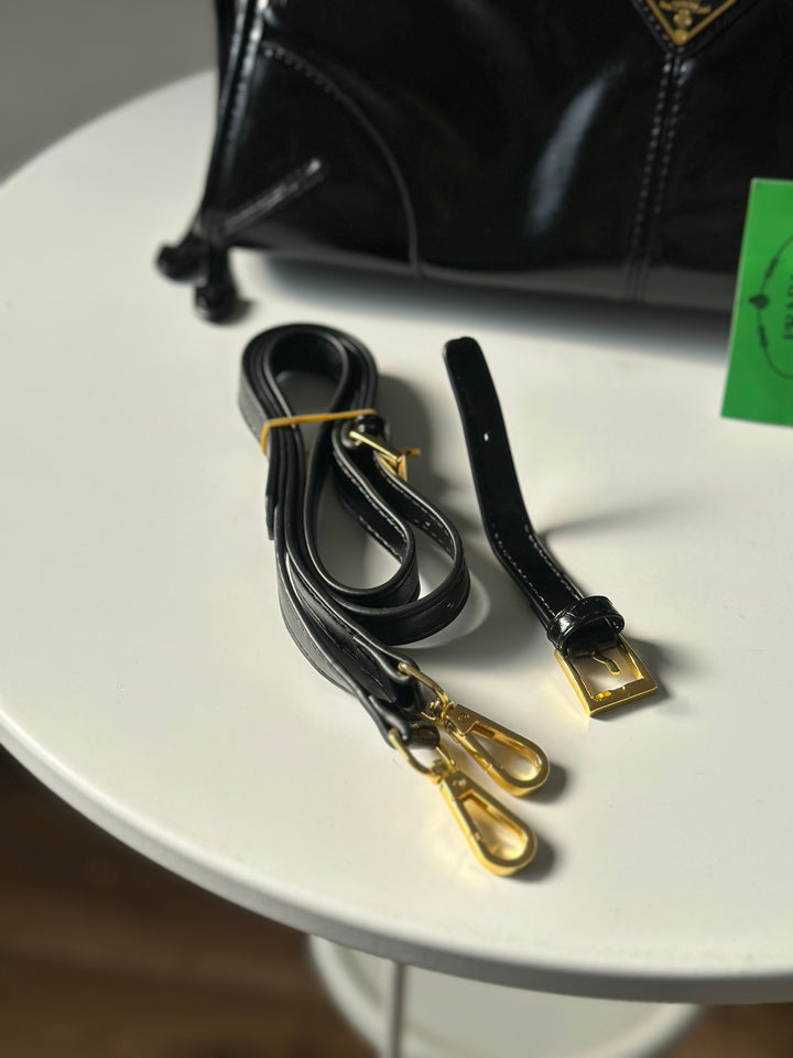 وصف الشنته : حقيبة جلد ناعم بالون الاسود وسحاب ذهبي وداخل الشنته بالون الاسود مع سحاب داخلي تكسيرها سحاب بالإضافة إلي حزام الأسود وحلقة ذهبي