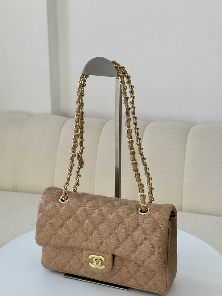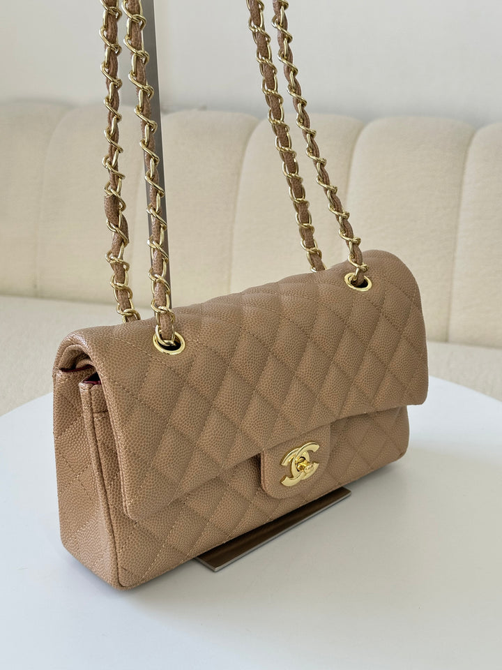 حقيبة شانيل كلاسيك فلاب قاعدة 25سم كافيار/ هاردوير ذهبي
