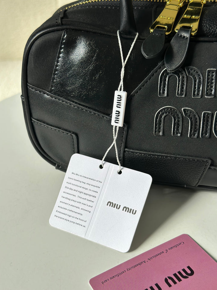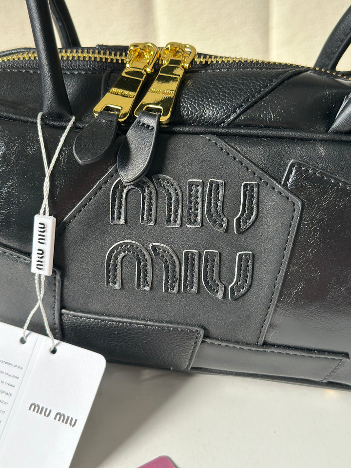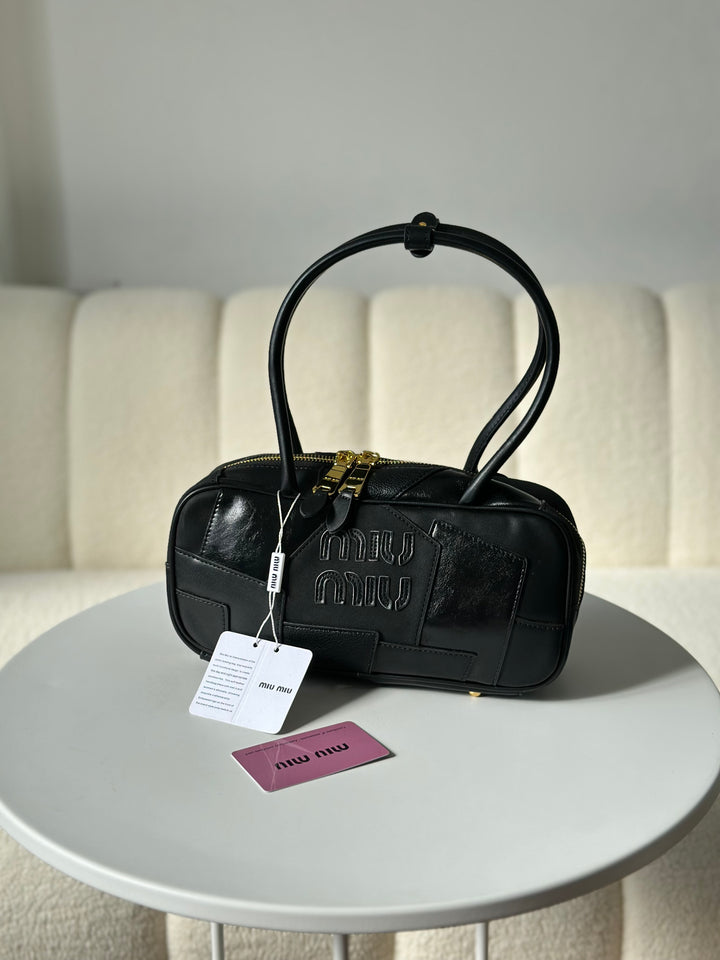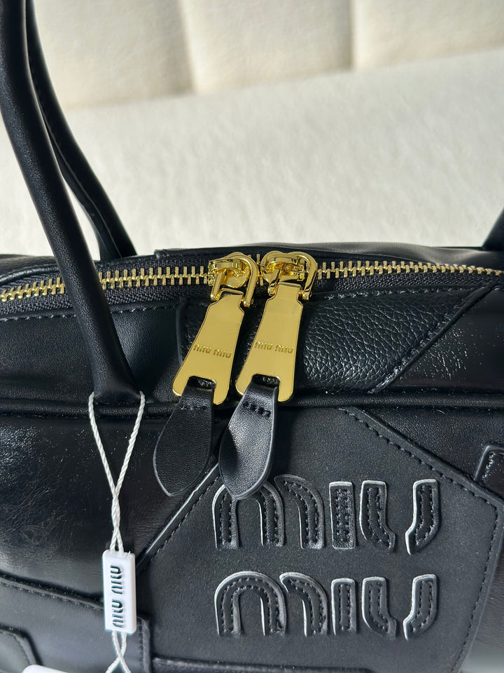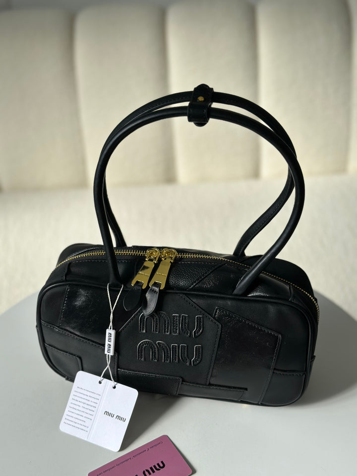 حقيبة ميو ميو مع ايد طويل مصنوعة من القماش المخمل والجلد
