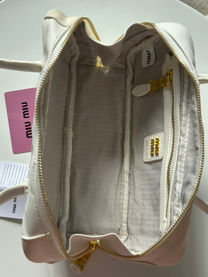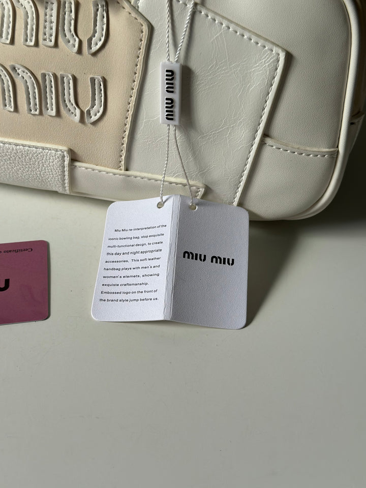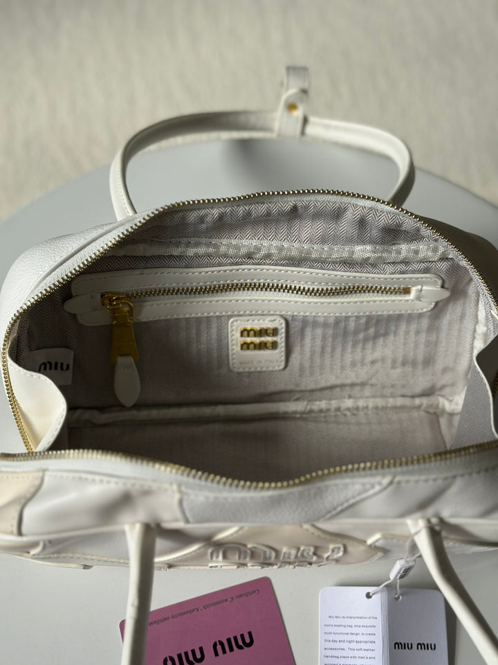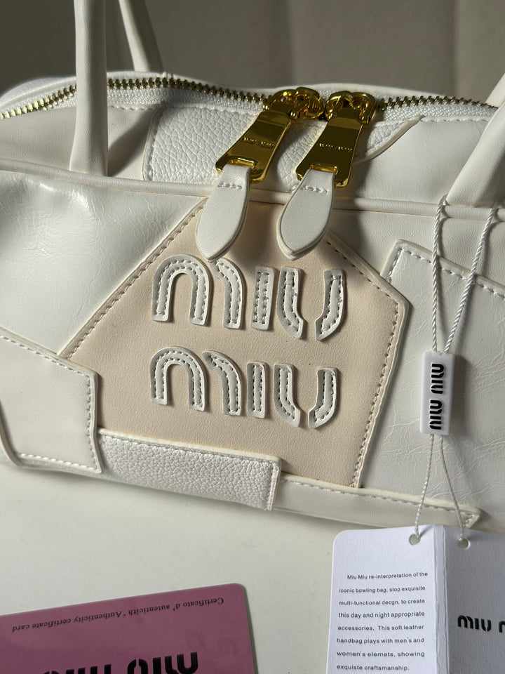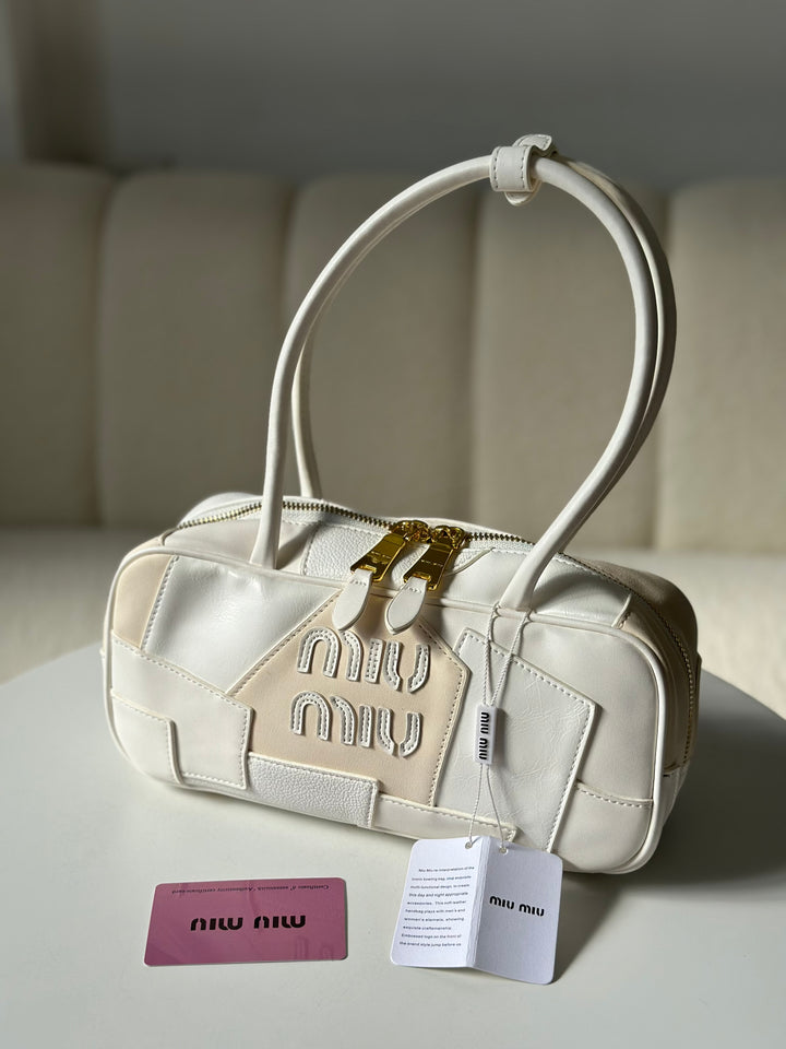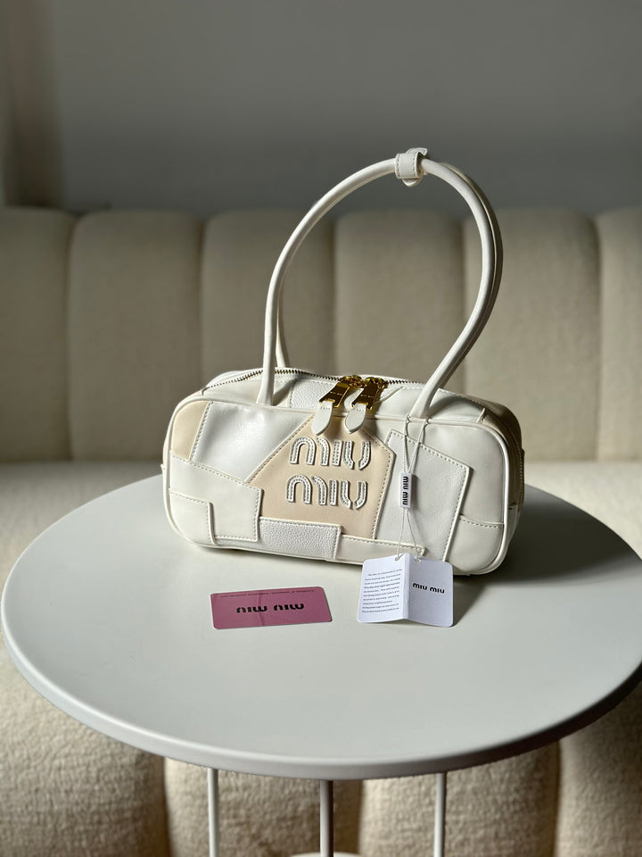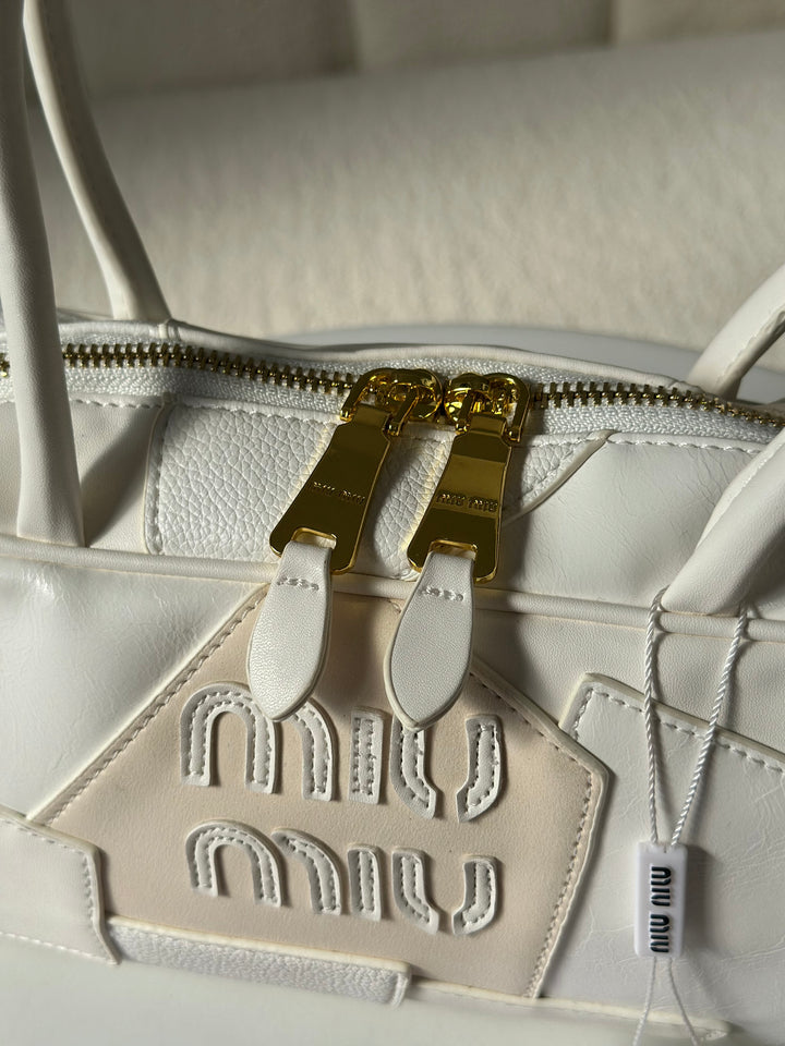 حقيبة ميو ميو مع ايد طويل مصنوعة من القماش المخمل والجلد