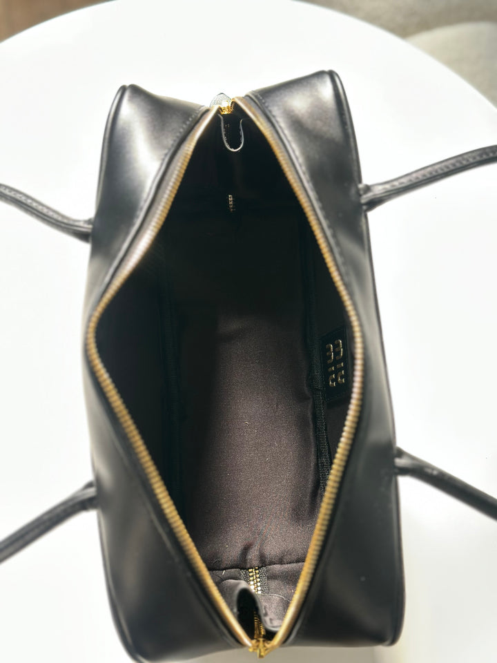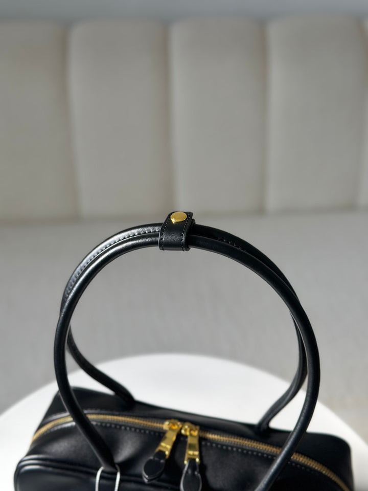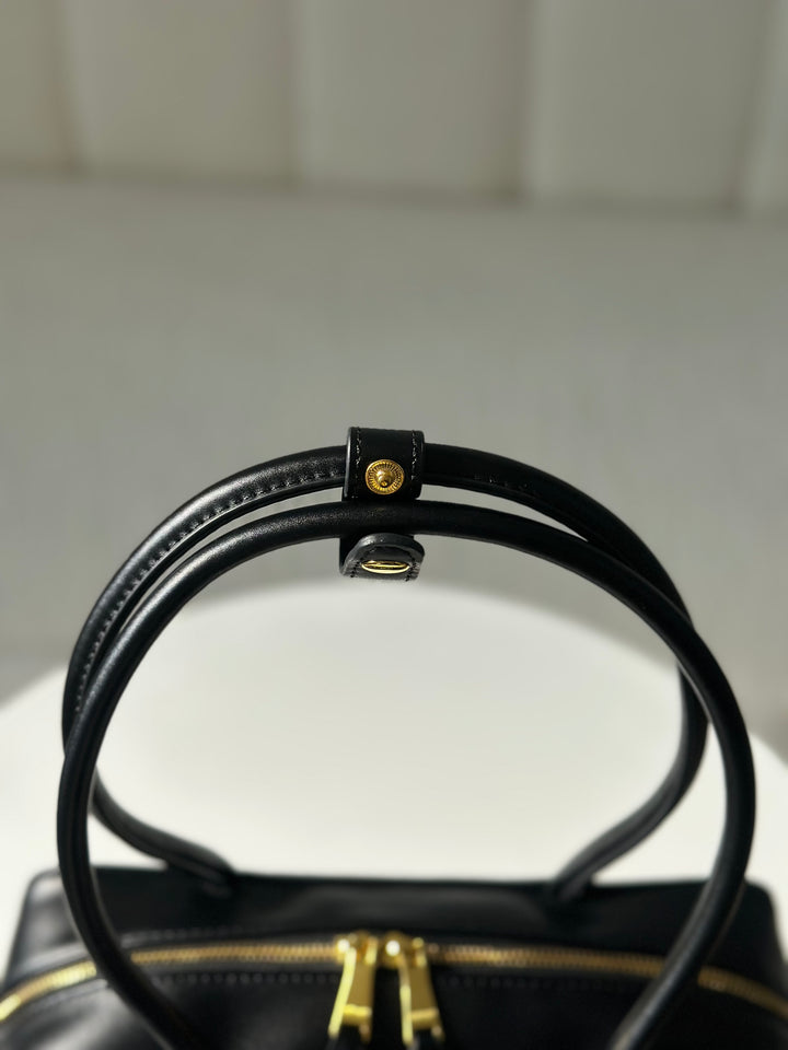 وصف الحقيبة: حقيبة جلدية باللون الاسود السادة محفورة من الامام بلوجو البراند، بتكون مع سحاب ويد طويلة تنحمل على الكتف