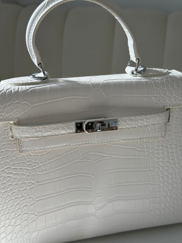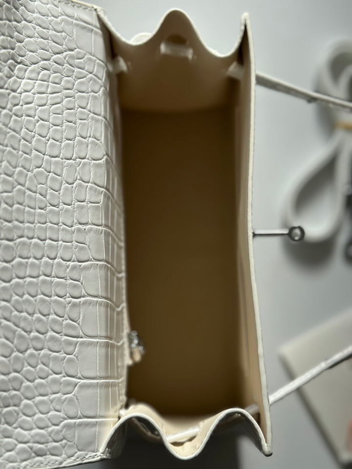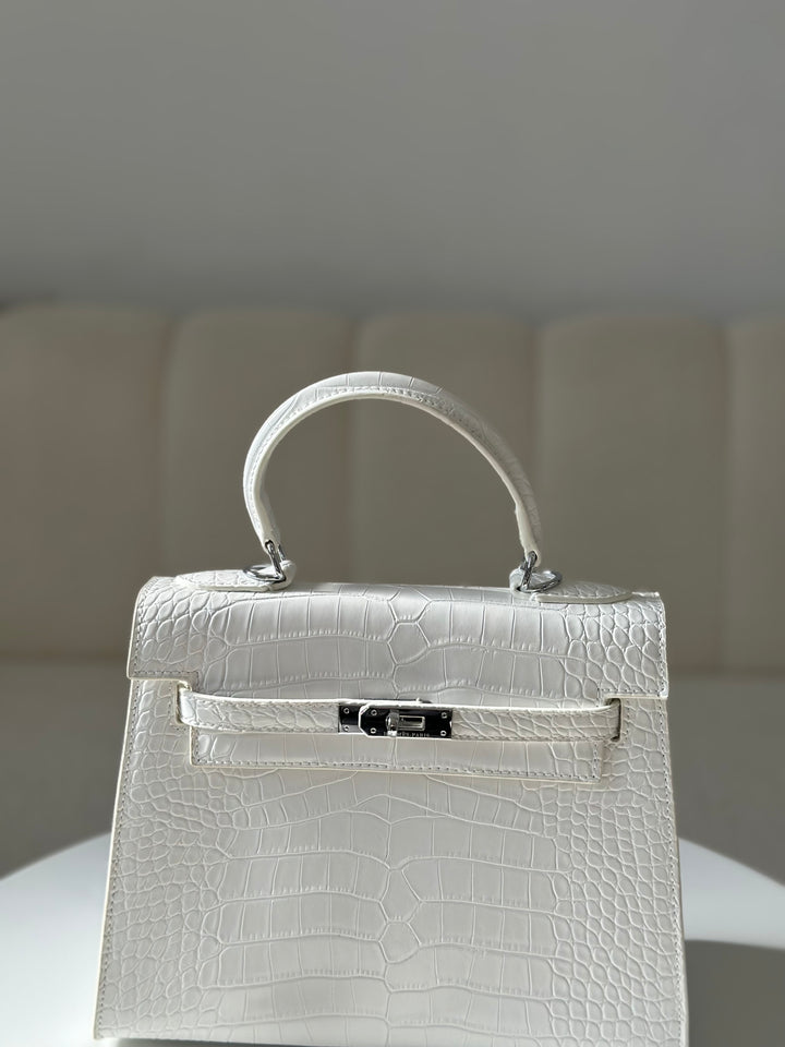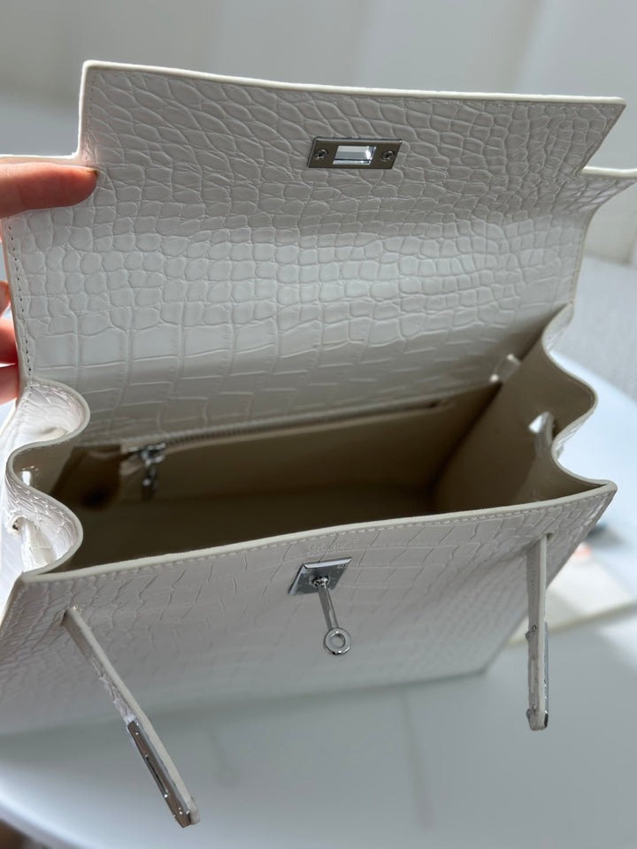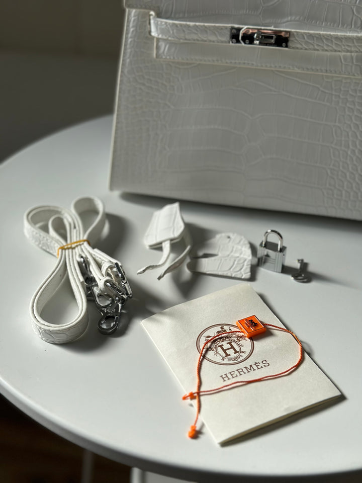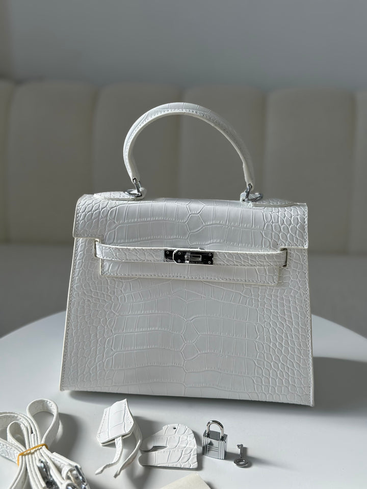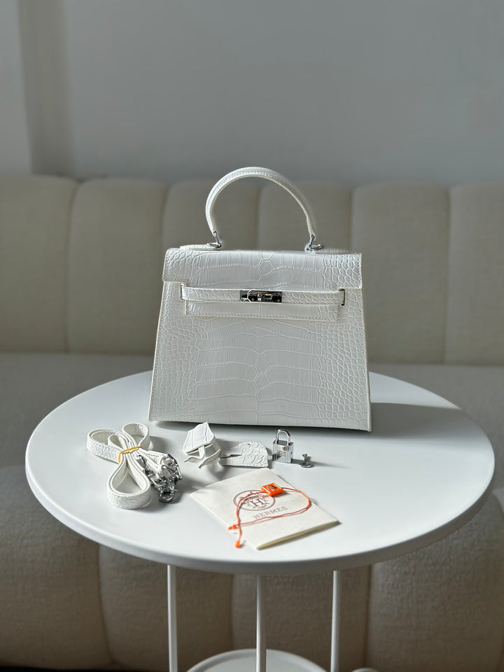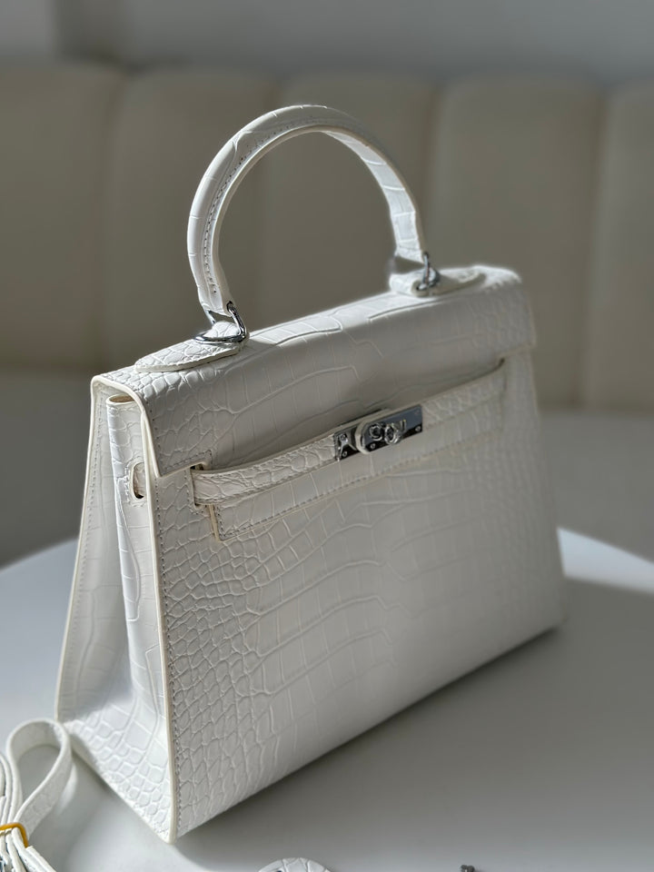 حقيبة كيلي هيرميز ابيض قاعدة 27سم