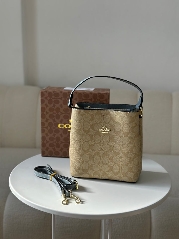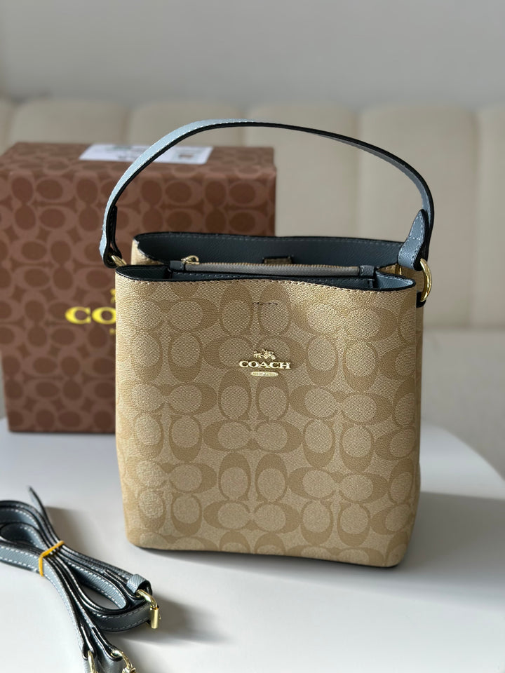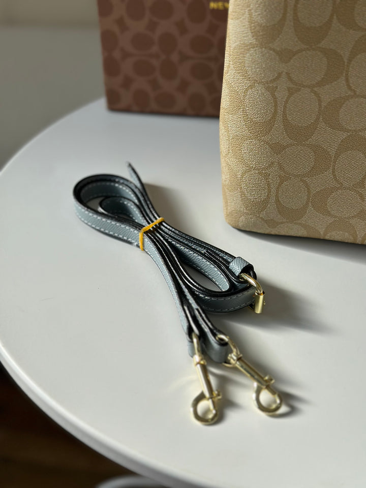 حقيبة كوتش بطانة ازرق قاعدة 22سم مع حزام وعلبة 🩵