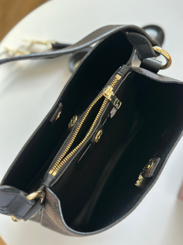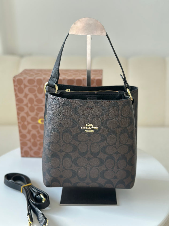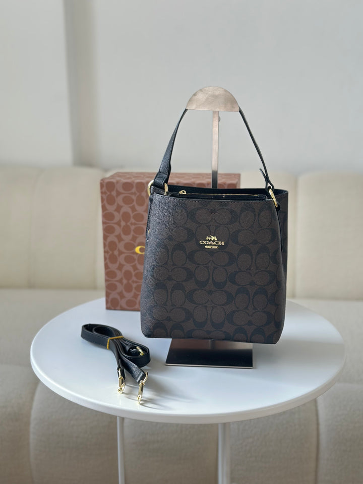 حقيبة كوتش بطانة اسود قاعدة 22سم مع حزام وعلبة 🤎