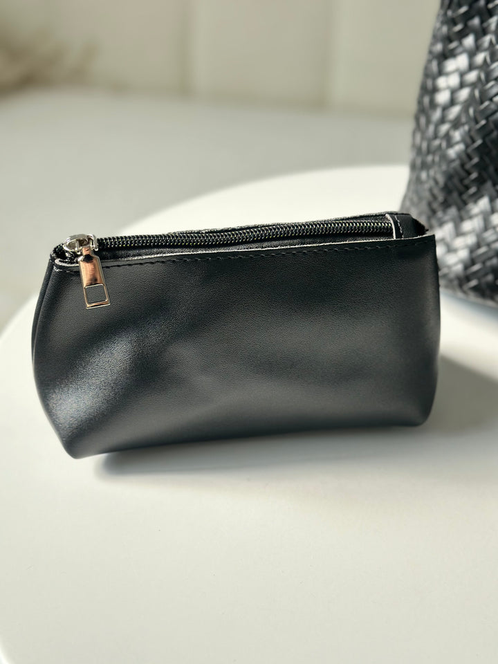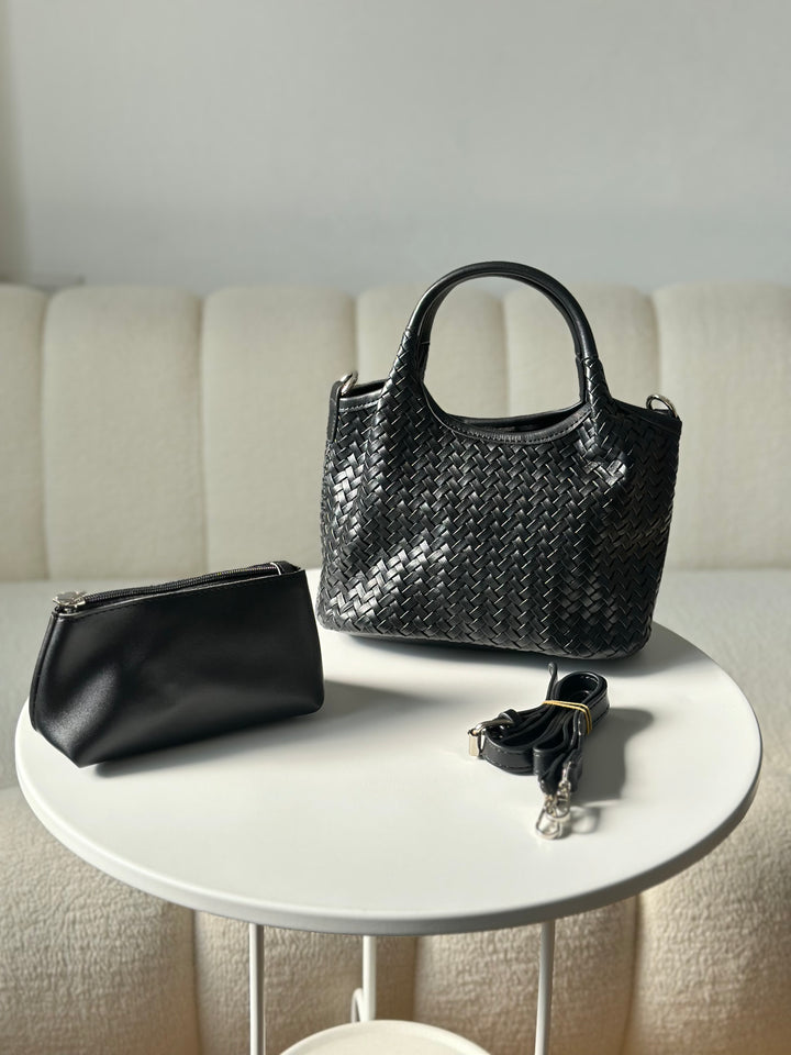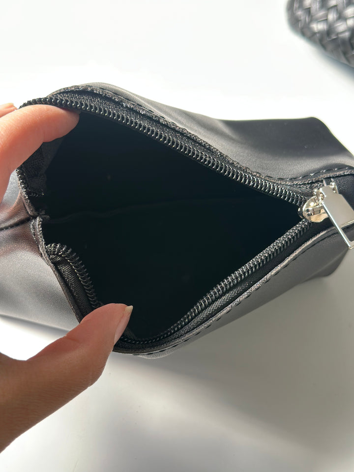 حقيبة جلدية لون اسود مع جزدان اضافي وحزام كروس يمكن ارتدائها باكثر من طريقة اما كروس او حمل باليد