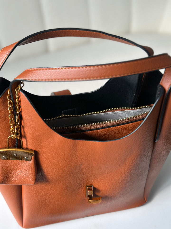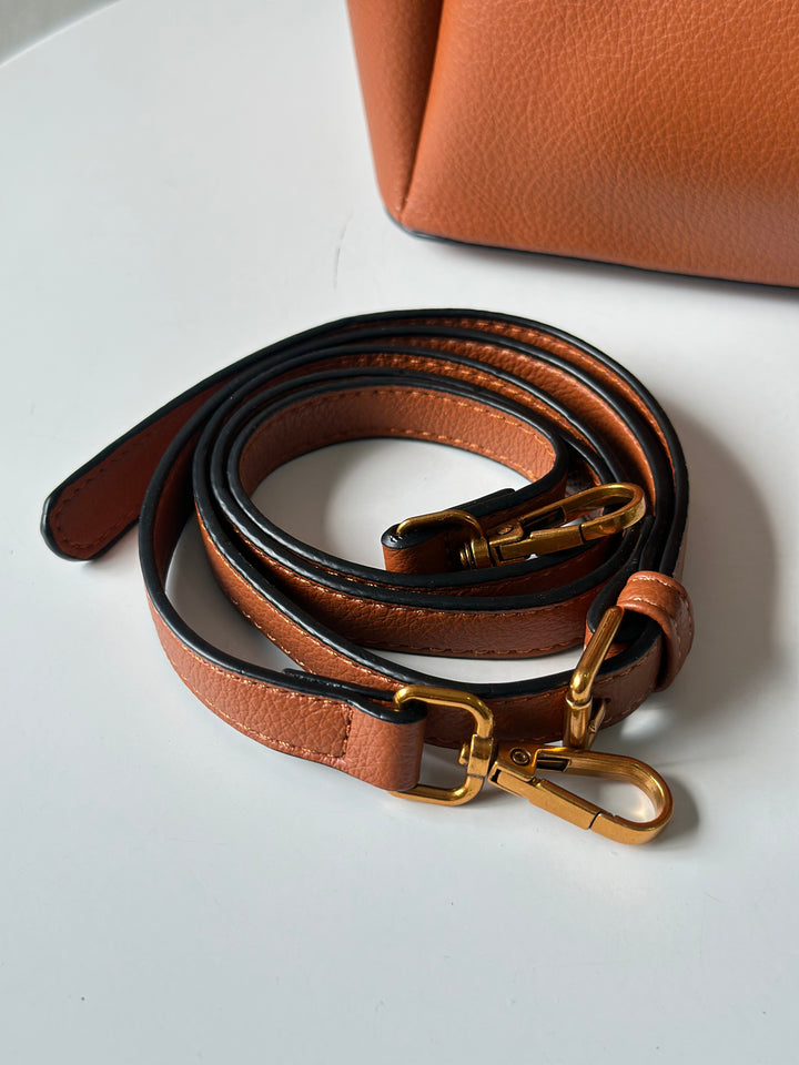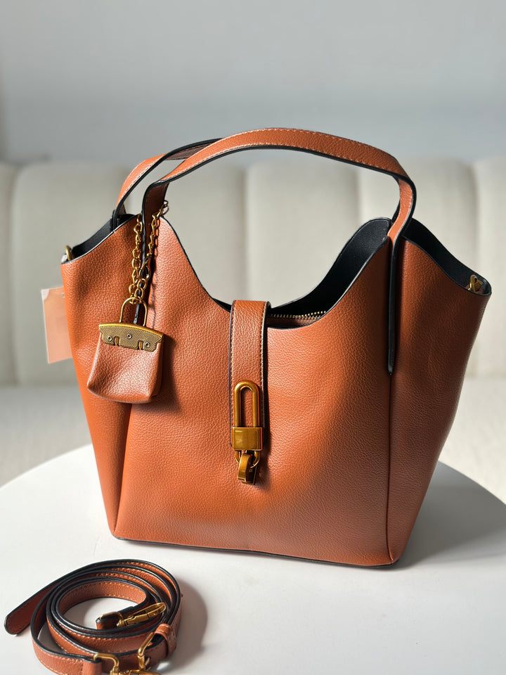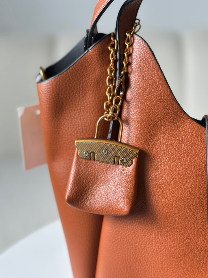 حقيبة جلدية مع حزام ومدالية علي شكل شنته قاعدة 24🧡