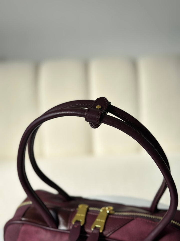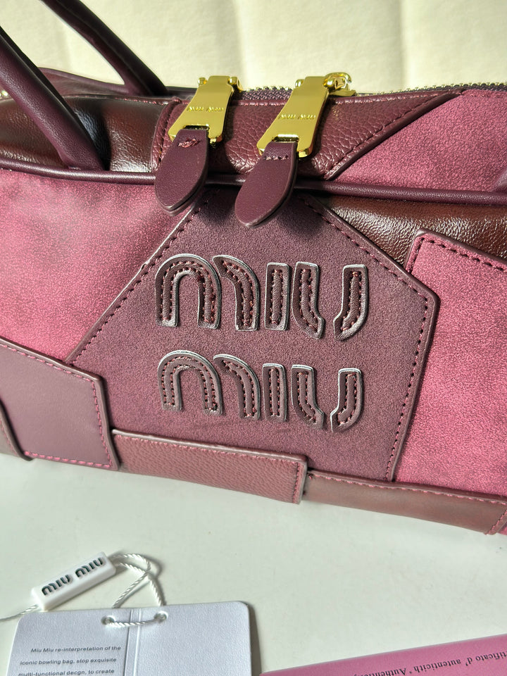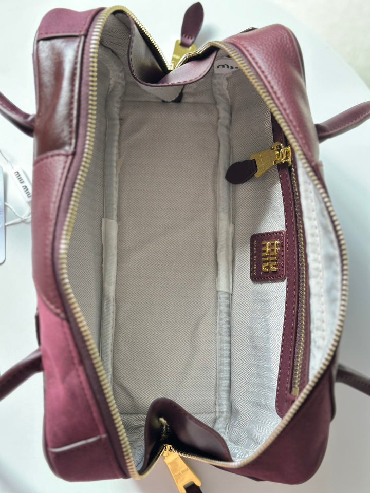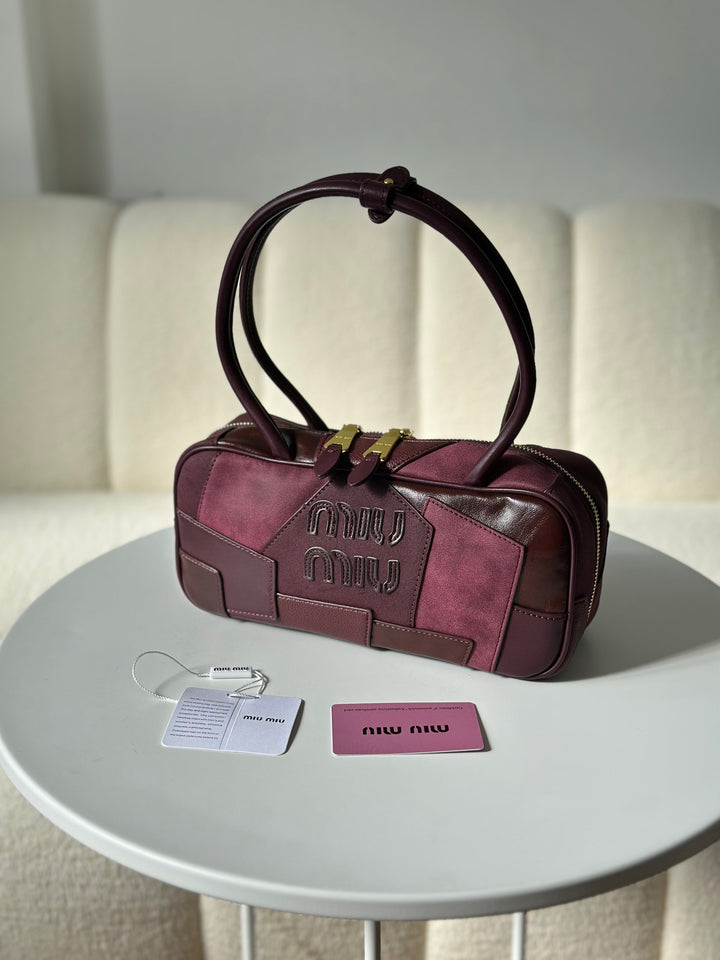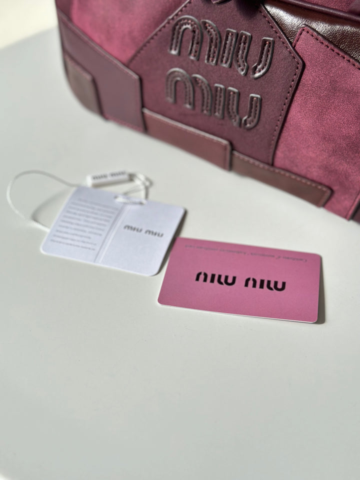 حقيبة ميو ميو مع ايد طويل مصنوعة من القماش المخمل والجلد