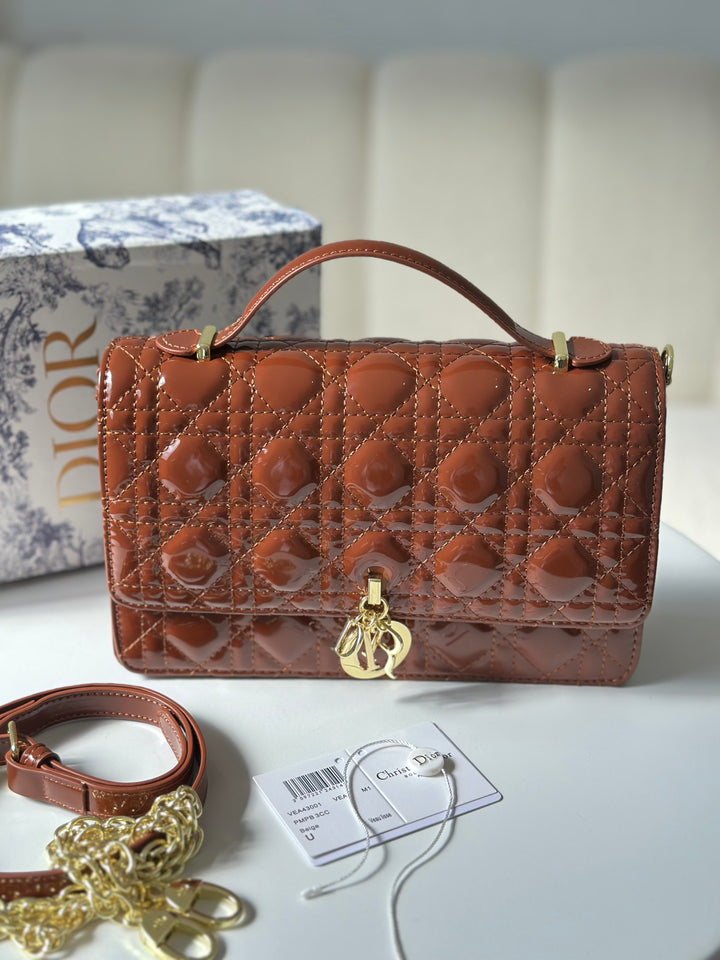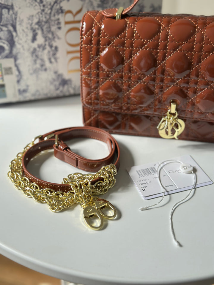 حقيبة ديور قاعدة 21سم مع حزام وعلبة🤎