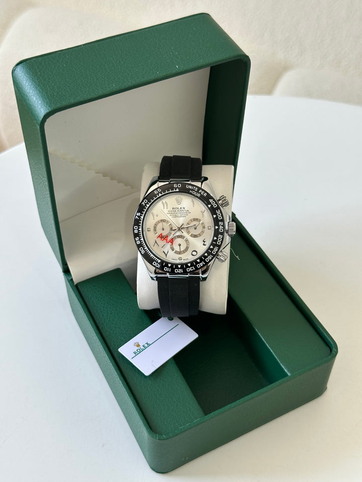 ساعة روليكس اسود ارضية ابيض ارقام عربية