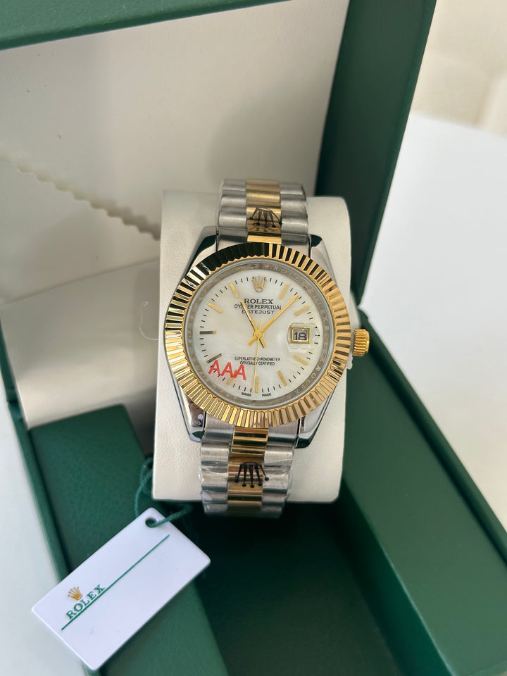 ساعة روليكس رجالي مكس ارضية ابيض مع تاريخ لا يعمل