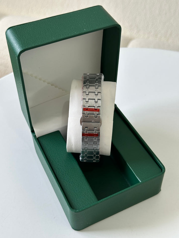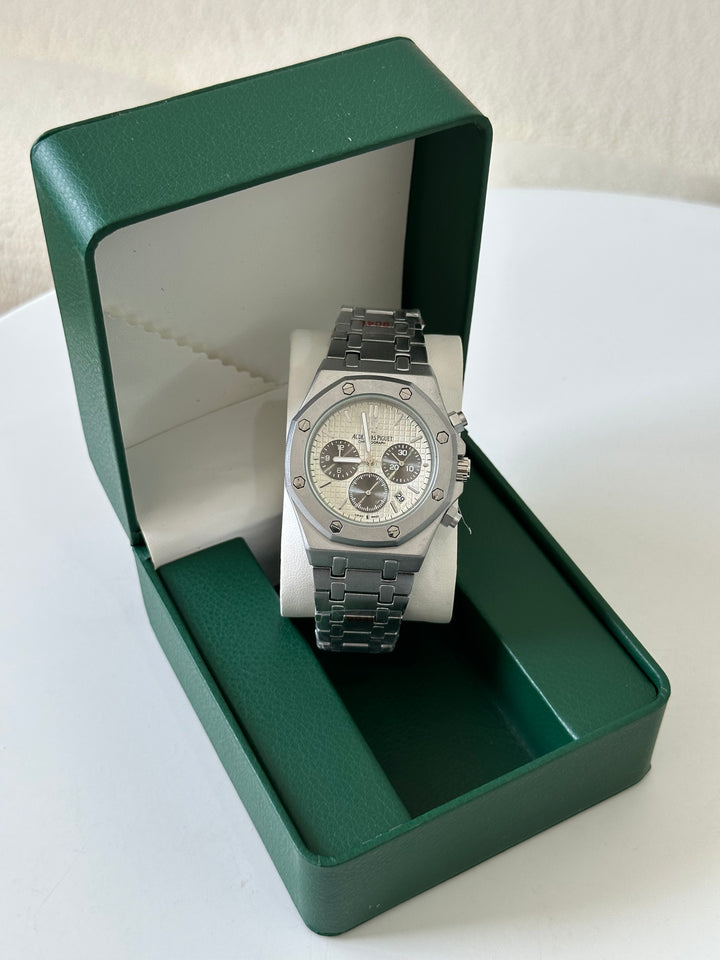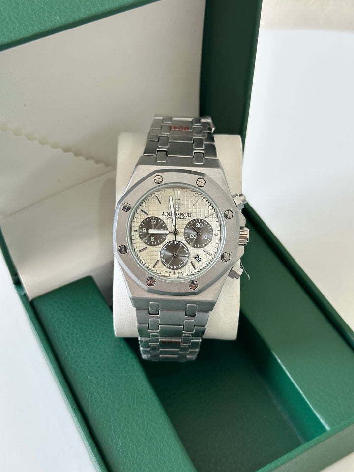 ساعة AP فضي ارضية ابيض مع تاريخ لا يعمل