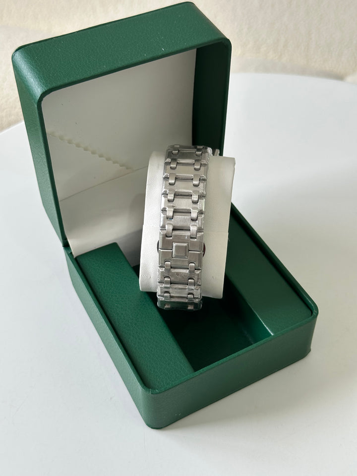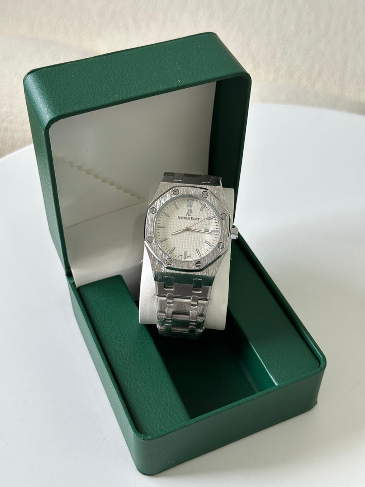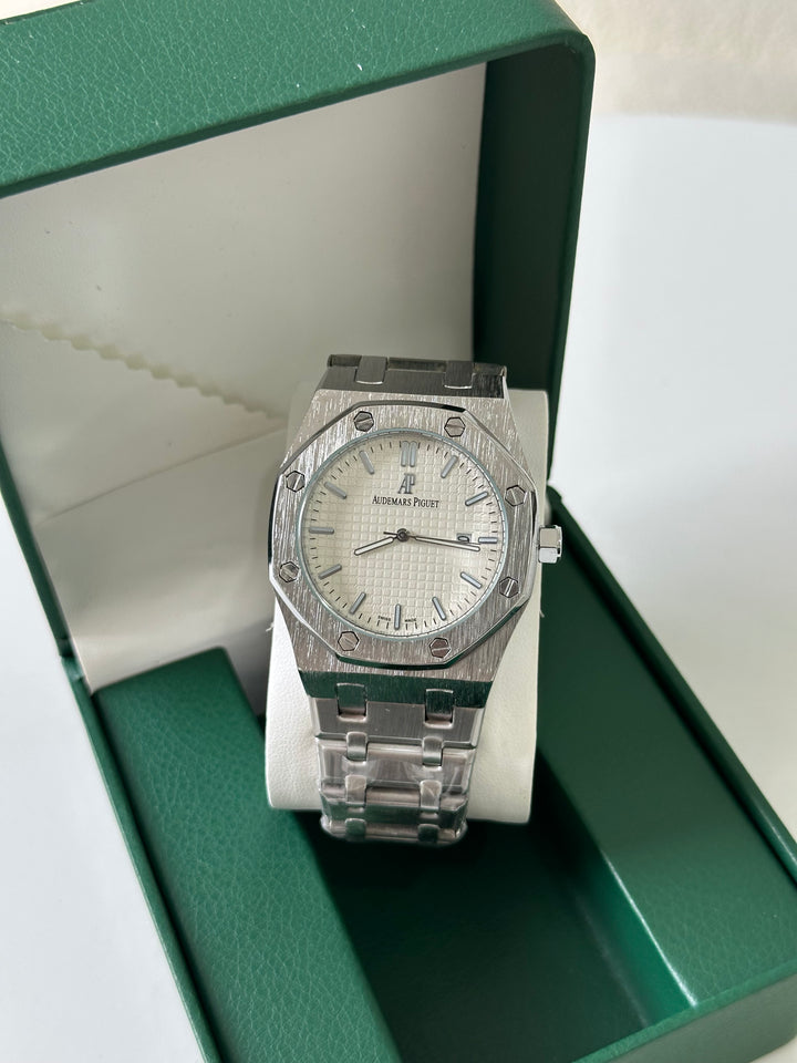 ساعةAP فضي ارضية ابيض مبزرة مع تاريخ لا يعمل