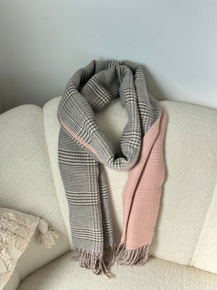سكارف ممكن ارتدائه على الوجهين وجه بالون الزهري والوجه الاخر كاروهات