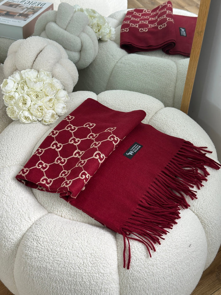 سكارف جوتشي وجه واحد احمر وابيض❤️🤍