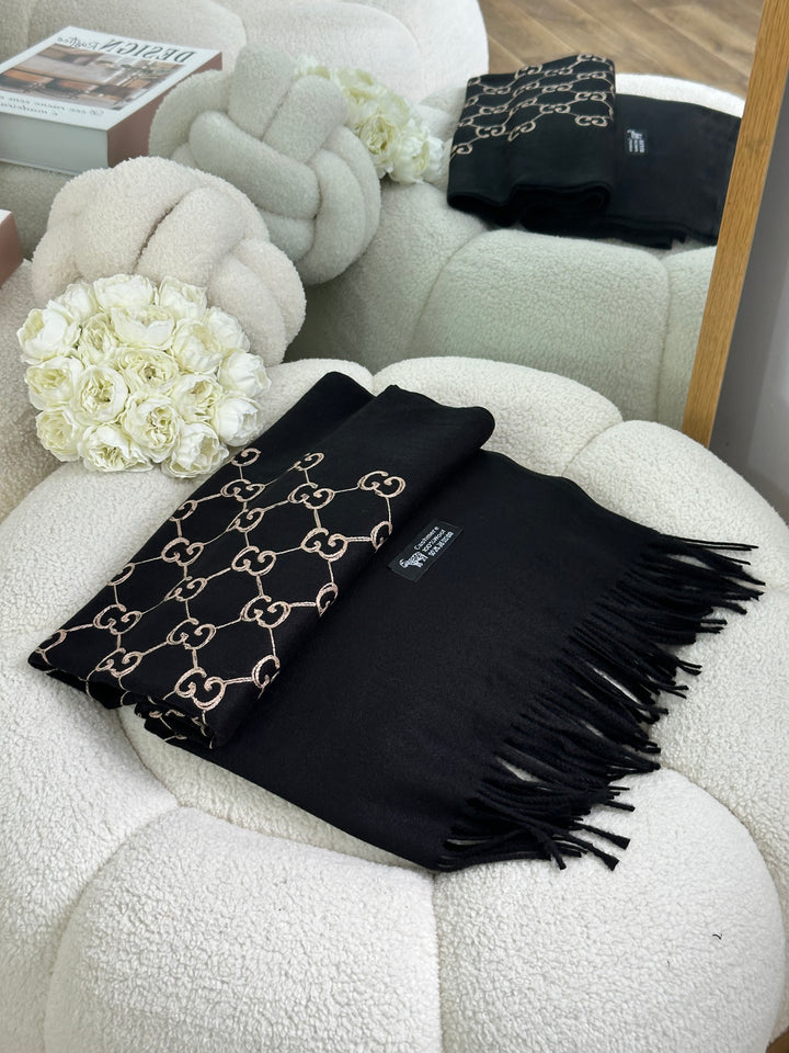 سكارف جوتشي وجه واحد اسود وبيج 🖤