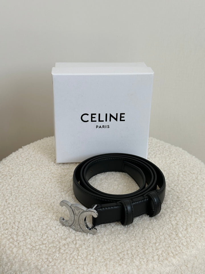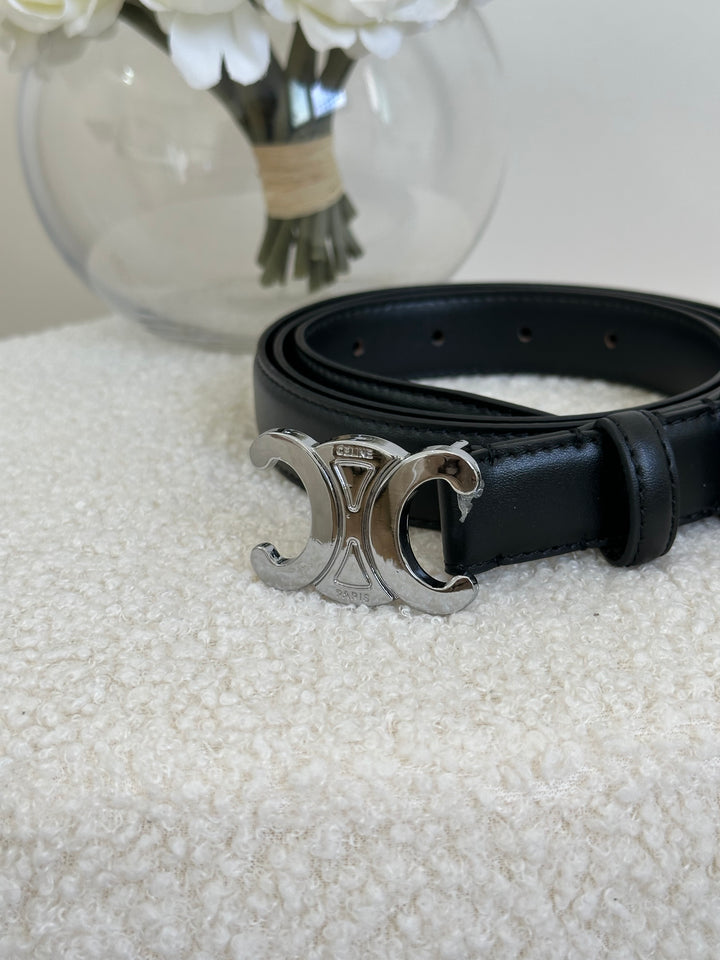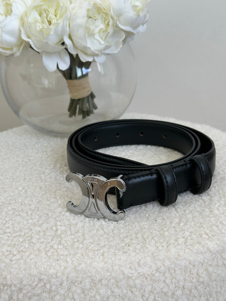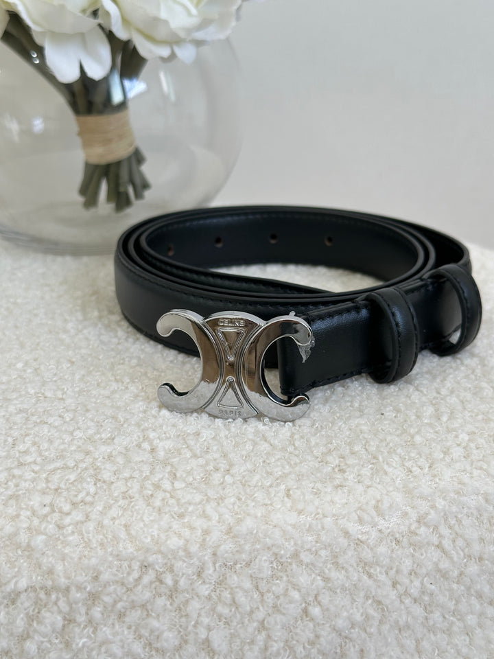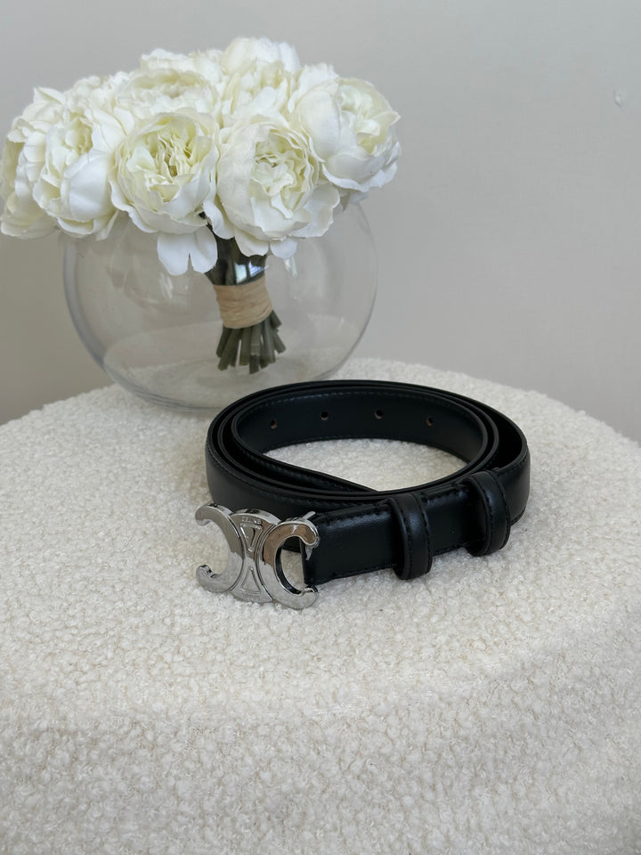 حزام سيلين اسود لوجو فضي مع علبة