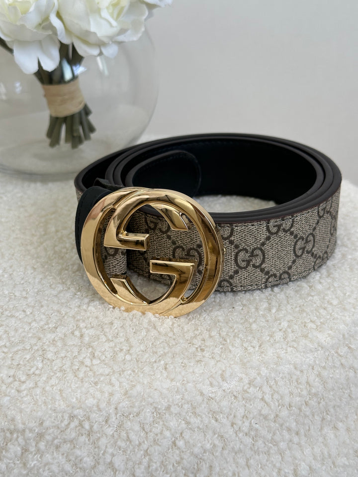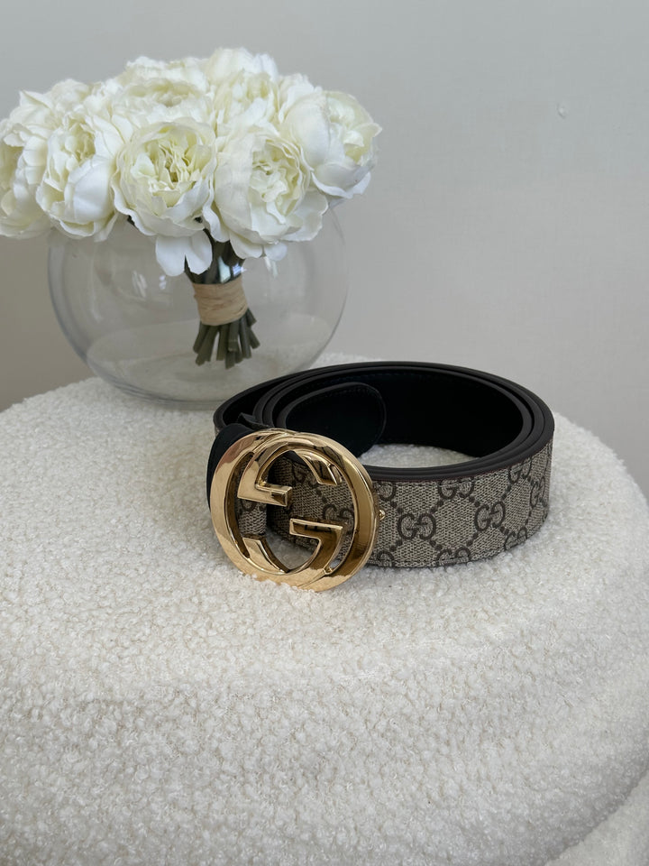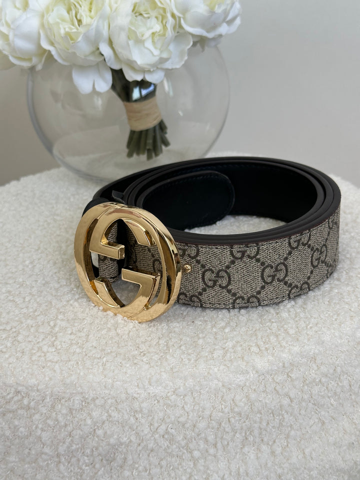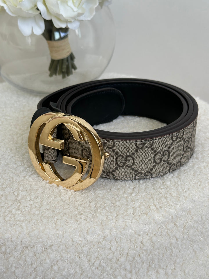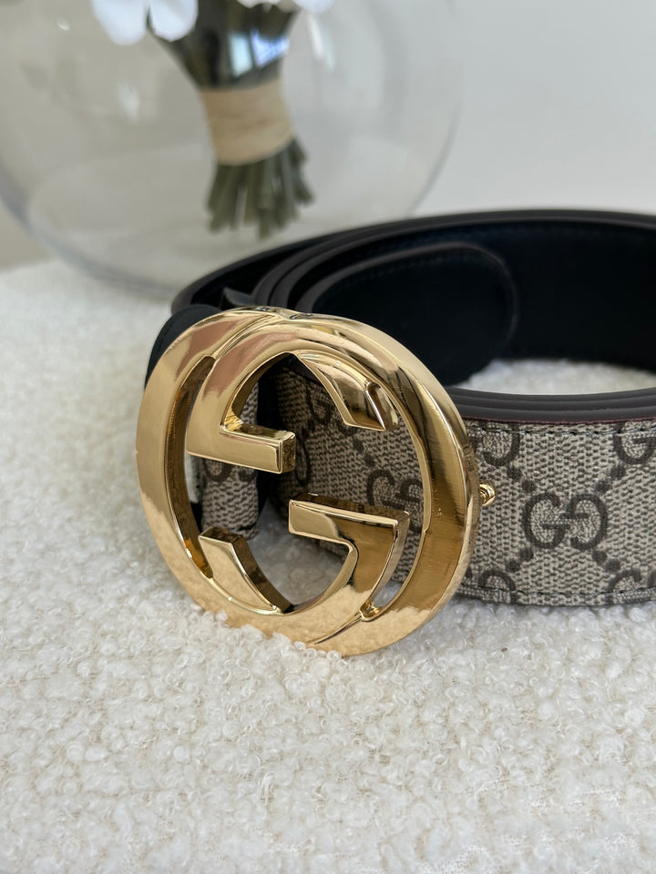 حزام جوتشي بيج لوجو ذهبي مع علبة