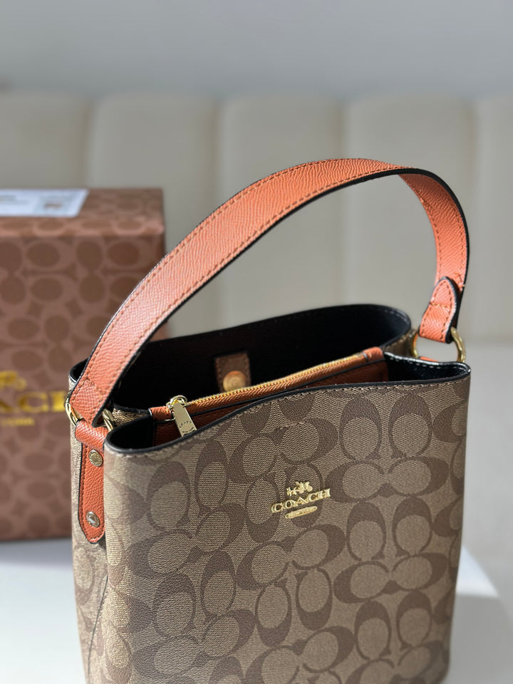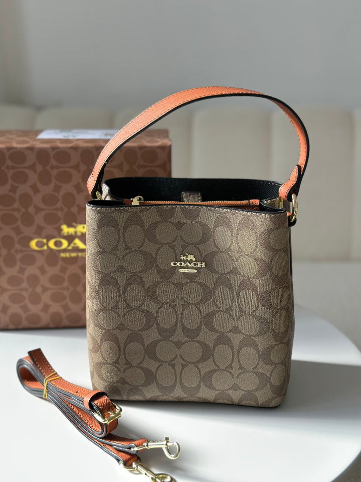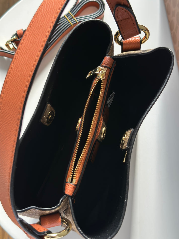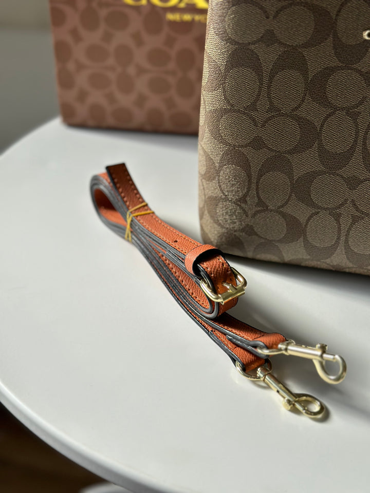 حقيبة كوتش بطانة اسود قاعدة 22سم مع حزام وعلبة🧡